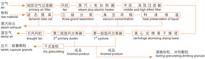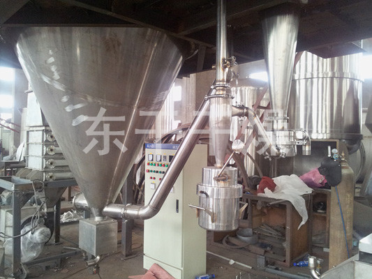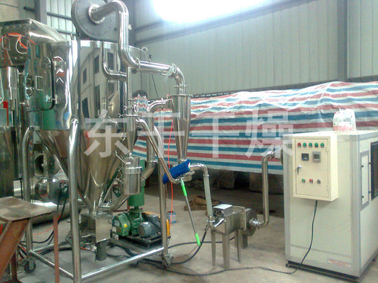 該機(jī)采用全封閉形式,所有部件均采用不銹鋼制造,配有三級(jí)凈化裝置,過(guò)濾后的空氣達(dá)十萬(wàn)級(jí)要求。筒體與頂部裝有冷壁裝置,使壁溫<80℃,干燥塔內(nèi)裝有氣刷掃塔裝置。經(jīng)該機(jī)干燥后的中藥浸膏粉,不會(huì)出現(xiàn)焦化變質(zhì)現(xiàn)象,大大增加了收粉率(95%以上),而且不會(huì)產(chǎn)生混藥現(xiàn)象和粘壁現(xiàn)象。