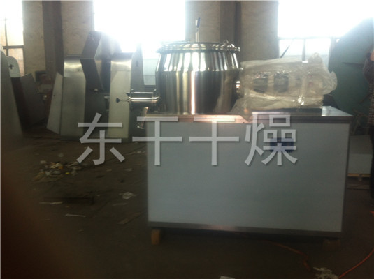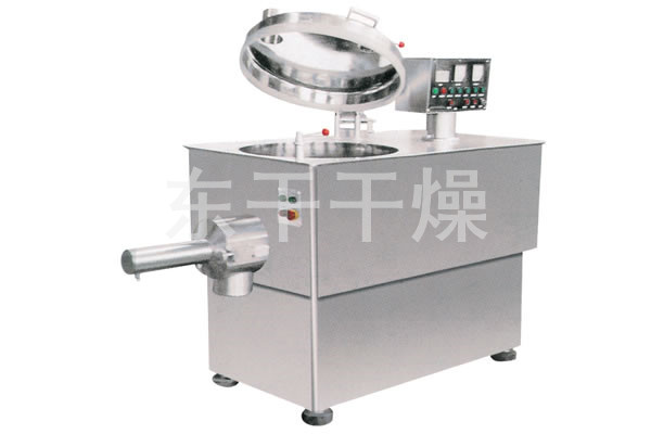 粉體物料與粘合劑在圓筒形容器中由底部混合漿充分混合成濕潤軟材,然后由側(cè)置的高速粉碎槳切割成均勻的濕顆粒。