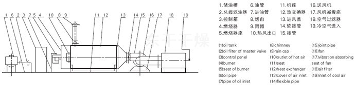 燃料通過燃燒器燃燒,產(chǎn)生高溫燃?xì)?。并借助具有?qiáng)化換熱措施的熱風(fēng)爐將高溫燃?xì)獾臒崃總鲗?dǎo)給被加熱的空氣,高溫燃?xì)饨?jīng)熱量散發(fā)后溫度降低至250℃后排到大氣中。需加熱的空氣通過選配的鼓風(fēng)機(jī)強(qiáng)送入熱風(fēng)爐,吸熱后溫度升至額定值從熱風(fēng)出口處送出,當(dāng)熱風(fēng)溫度達(dá)到額定溫度上限時,燃燒器會自動停止燃燒或自動轉(zhuǎn)為小火焰燃燒,當(dāng)熱風(fēng)溫度降低到額定下限溫度時,燃燒器又會重新點(diǎn)燃運(yùn)行或轉(zhuǎn)為大火燃燒,升溫的速度可以調(diào)節(jié)進(jìn)風(fēng)閥的開度來實(shí)現(xiàn)。