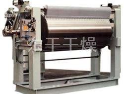 滾筒干燥機(jī)是一種內(nèi)加熱傳導(dǎo)型轉(zhuǎn)動(dòng)連續(xù)干燥設(shè)備。旋轉(zhuǎn)的滾筒通過(guò)其下部料槽,粘附著一厚度的料膜,熱量通過(guò)管道輸送至滾筒內(nèi)壁,傳導(dǎo)到滾筒外壁,再傳導(dǎo)給料膜,使料膜中的濕得到蒸發(fā)、脫濕、使含濕分的物料得到干燥。干燥好的物料被裝置在滾筒表面的刮刀鏟離滾筒,到置于刮刀下方的螺旋輸送器,通過(guò)螺旋輸送器將干物